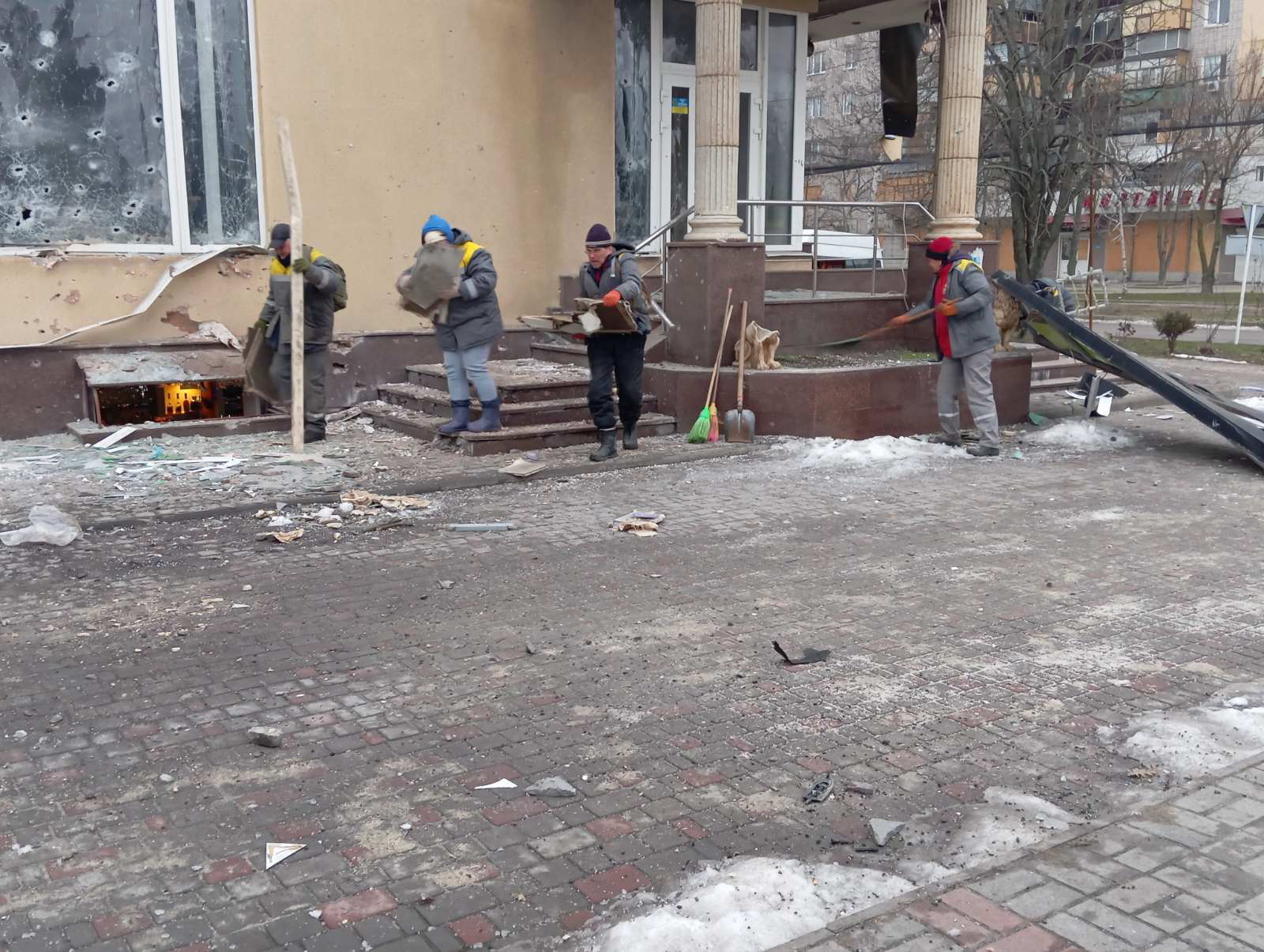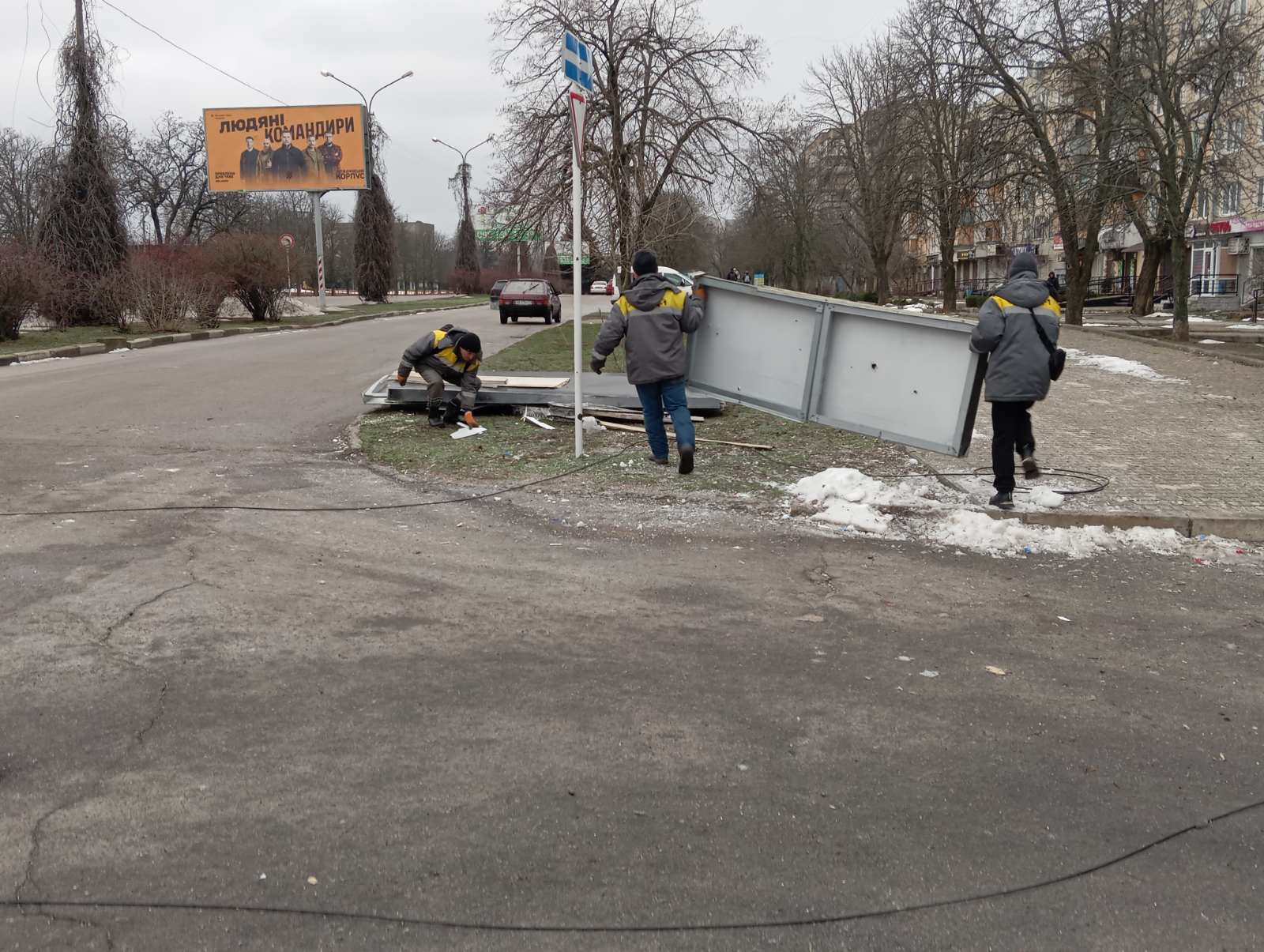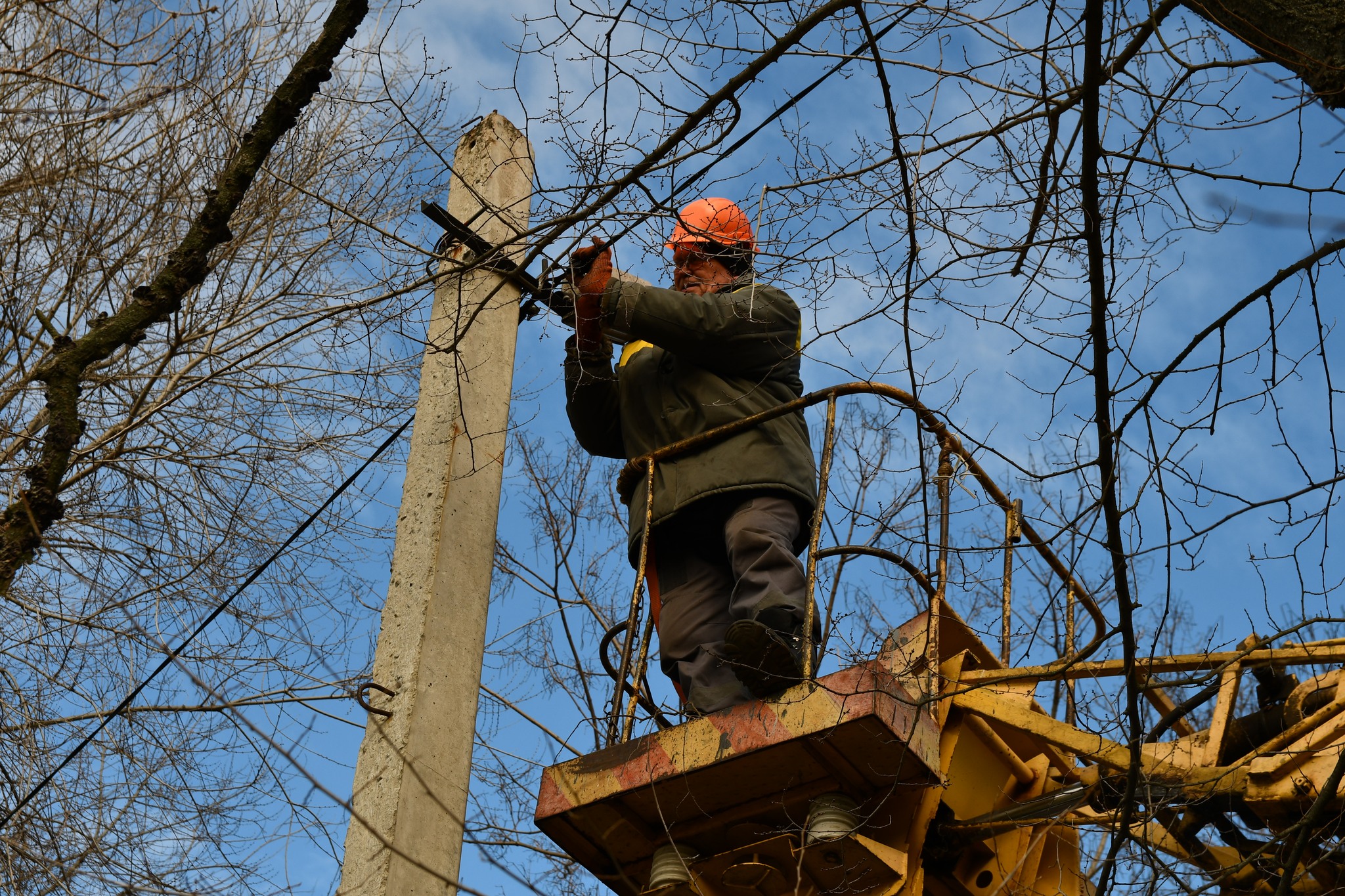 Електрики відновлюють лінії вуличного освітлення, пошкоджені внаслідок обстрілів.